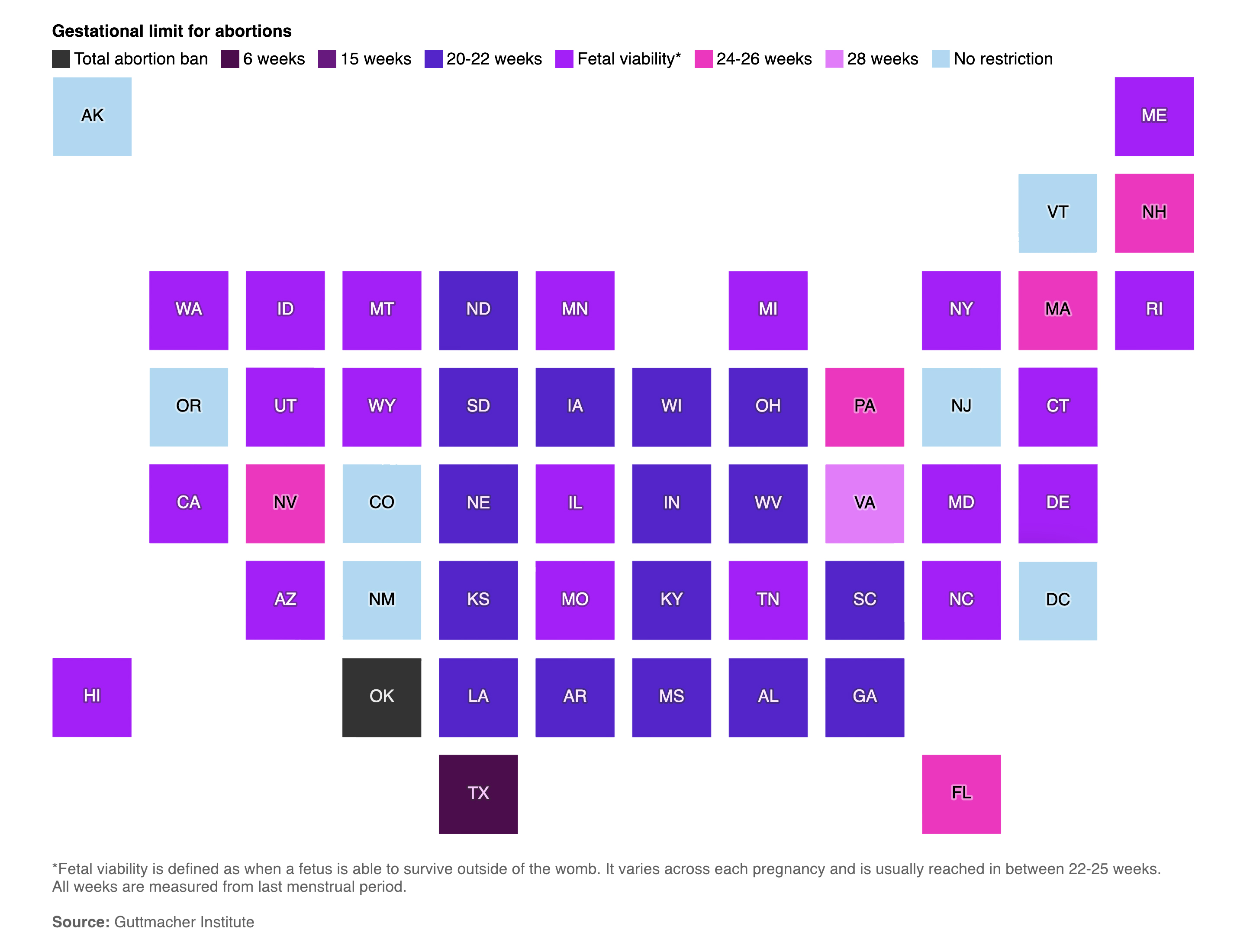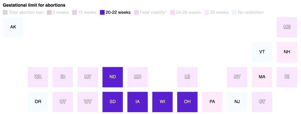 This project began as an infographic accompanying an article at The 19th entitled “What abortion restrictions look like in every state – right now”.