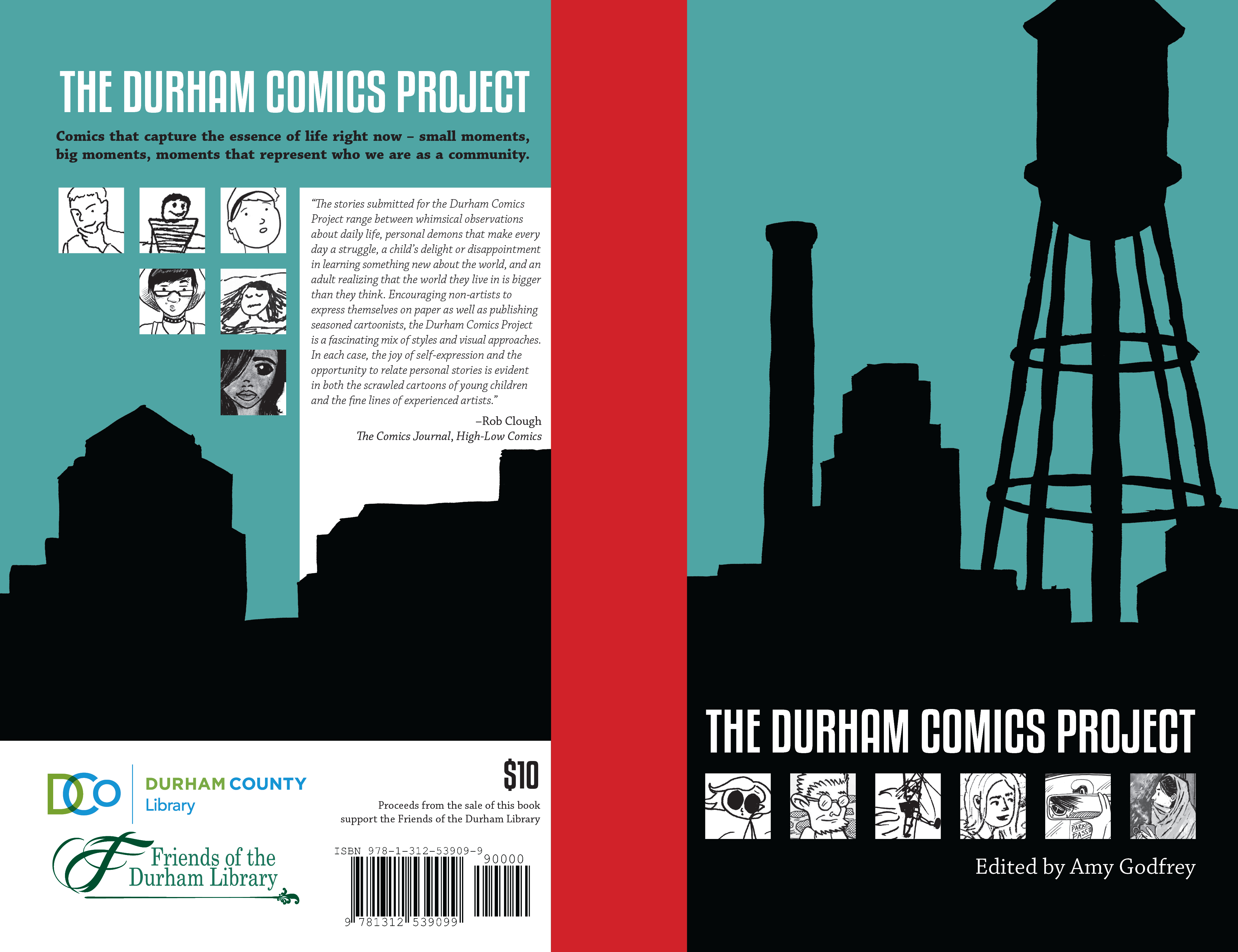 Cover and interior design, and cover illustration, for The Durham Comics Project, an anthology comics of comics by artists in and around Durham, NC, created and edited by Amy Godfrey.