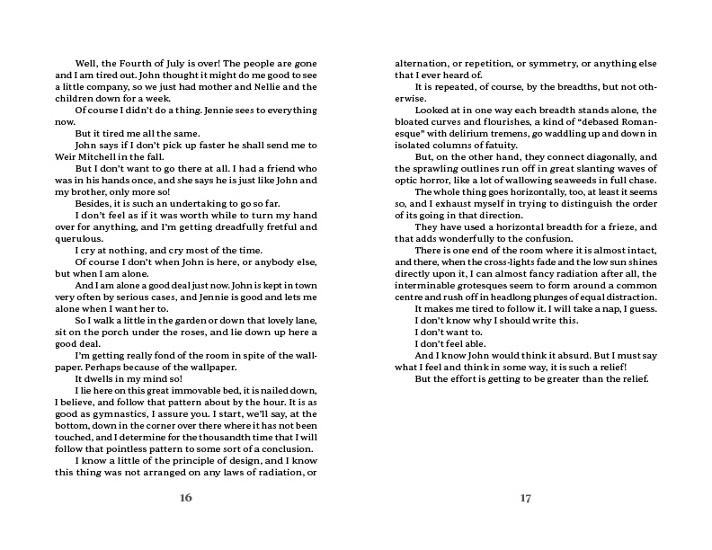 Chapbook/zine edition of “The Yellow Wallpaper”, Charlotte Perkins Gilman’s 1892 short story, including original illustrations.