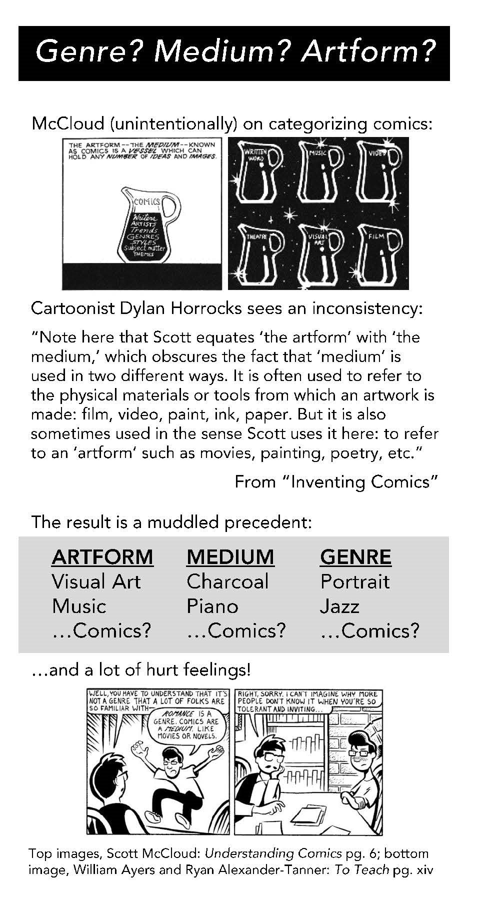 Brochure created to accompany “Underestimating Comics”, my lecture on introductory comics theory. Download a PDF of the brochure, including pages with recommended reading and works cited.