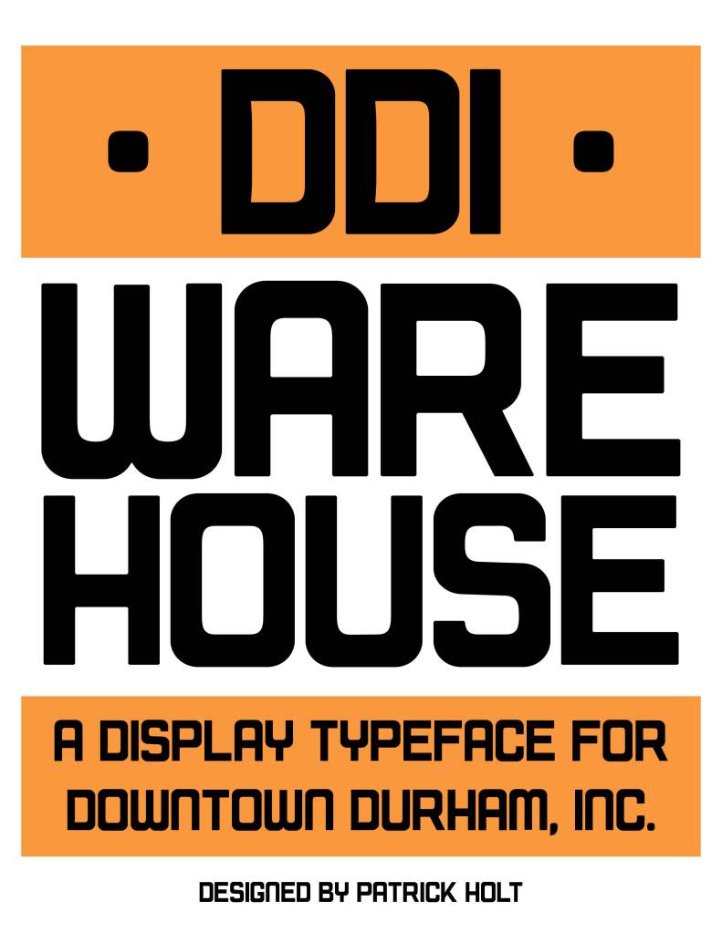 DDI Warehouse, designed for Downtown Durham, Inc., manager of Durham, NC’s downtown Business Improvement District. The design is inspired by signage of the Liberty Warehouse complex, a cluster of buildings used in various stages of tobacco auction. Most of the buildings have been destroyed for new development, but today’s Liberty Apartments have retained a portion of the signage.