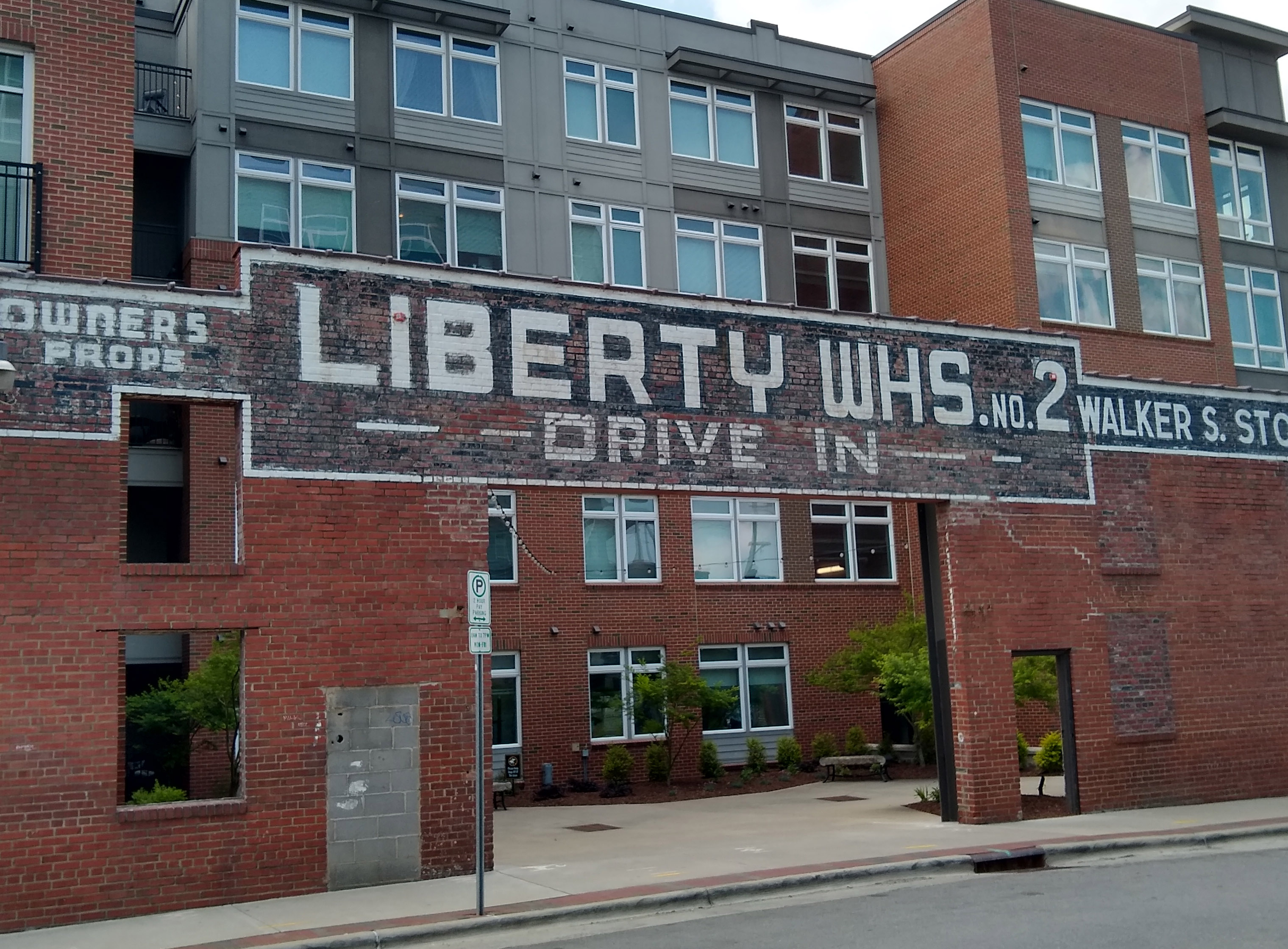 DDI Warehouse, designed for Downtown Durham, Inc., manager of Durham, NC’s downtown Business Improvement District. The design is inspired by signage of the Liberty Warehouse complex, a cluster of buildings used in various stages of tobacco auction. Most of the buildings have been destroyed for new development, but today’s Liberty Apartments have retained a portion of the signage.